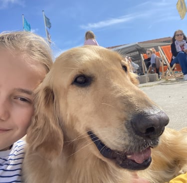 Frauchen hat mich abgeholt, als ich 5 Monate alt war und seit dem gehöre ich zur Familie Heydel. Wir machen alles so gut es geht zusammen: Spazieren, Ausflüge, Ferien...