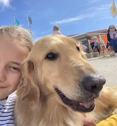 Ich bin immer friedlich und freundlich! Das ist natürlich super, weil ich als Schulhund viel mit Kindern zusammen bin! Kinder finde ich sowieso einfach Mega. Zu Hause wohne ich mit Leni, die 6 Jahre älter ist und Henni, die genau so alt ist wie ich. Ich liebe es, mit den beiden zu kuscheln!