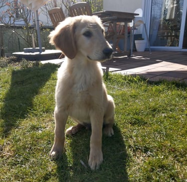 Frauchen hat mich abgeholt, als ich 5 Monate alt war und seit dem gehöre ich zur Familie Heydel. Wir machen alles so gut es geht zusammen: Spazieren, Ausflüge, Ferien...